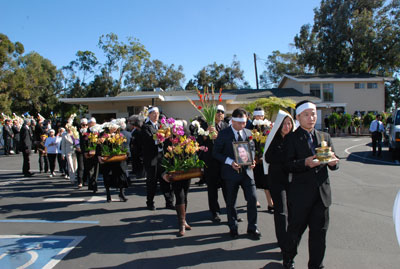 Hàng trăm thân hữu và đồng hương tiễn đưa linh cữu cố nhạc sĩ Nhật Ngân đến nơi an nghỉ cuối cùng tại nghĩa trang Peek Family.
