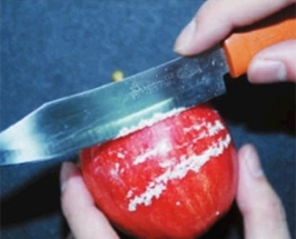 Vỏ táo với lớp sáp dày đặc đang được cạo ra