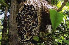 Trái ngược với 2 loài cây trên, cây bí kỳ nam (kỳ nam kiến) lại “bắt tay” với côn trùng để có lợi trong việc tồn tại. Cây thường sống bám trên các cây thân gỗ lớn, có thân phình thành củ lớn, mặt ngoài sần sùi, phía bên trong là một tổ kiến theo đúng nghĩa đen với những đường hầm chằng chịt chứa đầy kiến. Quan hệ cộng sinh của cây và kiến thể hiện ở chỗ, cây cung cấp một “pháo đài” trú ẩn và nước cho kiến, trong khi kiến tha mùn và thải phân làm nguồn nuôi dương cây. Cây bì kì nam chỉ có ở miền Nam và là đặc sản của các tỉnh Tây Nguyên.