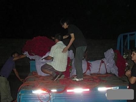 Nhân viên của cửa hàng hoa đang vận chuyển hơn 1 vạn bông hồng tới chân ký túc xá nữ