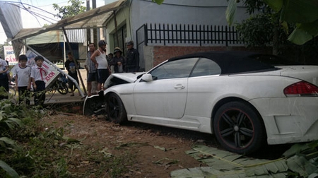 Xe BMW nát đầu vì đâm vào nhà dân