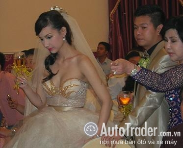 Ngồi trong con Bentley Continental Flying Spur có giá khoảng 190.000 USD ở thị trường nước ngoài là đôi uyên ương. Đó là thiếu gia Trần Văn Chương (Phó Tổng giám đốc Công ty Cổ phần Thủy sản Bình An) và MC Nguyễn Đỗ Quỳnh Chi.