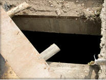 Miệng cống thoát nước mà nạn nhân bị lọt xuống. Ảnh: Châu Thành