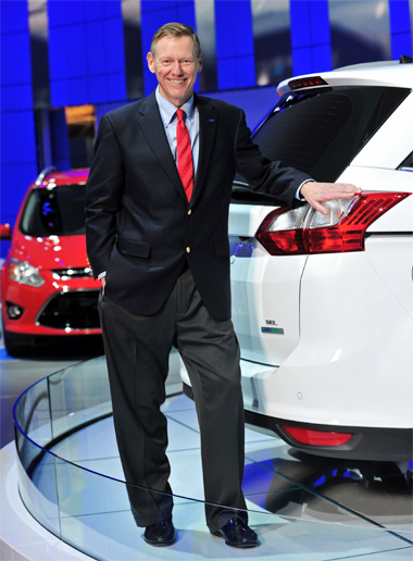 | Alan Mulally tại gian hàng của Ford ở một triển lăm quốc tế. Ảnh: Automotiveit. |