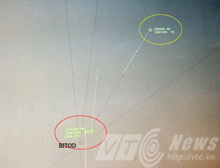 Hai máy bay ở cùng độ cao FL340 (độ cao khoảng 10 Km) đang cùng bay thẳng về hướng ngã sáu BITOD, và có khả năng gặp nhau tại đây.