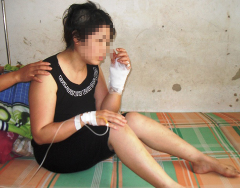 Đôi mắt thâm quầng, khuân mặt nhợt nhạt yếu ớt, cánh tay gần như đứt ĺa, trên giường bệnh tại Khoa Chấn thương Bệnh viện Đa khoa tỉnh Vĩnh Phúc, nạn nhân Lương Thị Nguyệt vẫn c̣n nhớ như in sự việc kinh hoàng với mẹ con chị.