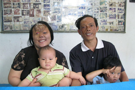 May thay, anh và những người anh em c̣n lại vẫn b́nh thường. Nhưng họa vô đơn chí, khi anh vừa tṛn 6 tháng tuổi, ngọn đèn dầu rớt vào làm cháy màn, cháy cả khuôn mặt đứa trẻ đang nằm ngủ vùi trong nôi là anh. V́ mặc quần áo dày nên toàn thân không bị thương nhiều nhưng khuôn mặt th́ bị lửa ăn vào từ đỉnh đầu xuống đến tận cằm. Nếu tuổi thơ của đứa trẻ cùng lứa là được chạy nhảy vui đùa th́ tuổi ấu thơ của anh lại phải gắn liền với những lần vào viện liên miên.