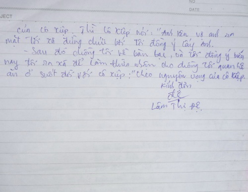 Từ câu nói này, thấy không thể thôi vợ được mà cũng không muốn người yêu đi lấy chồng, ông P. về chịu thiệt với vợ để được cưới thêm cô X. Hai vợ chồng thỏa thuận với nhau xong thì bà Đ. mới mang đơn lên UBND xã với nội dung như trên.