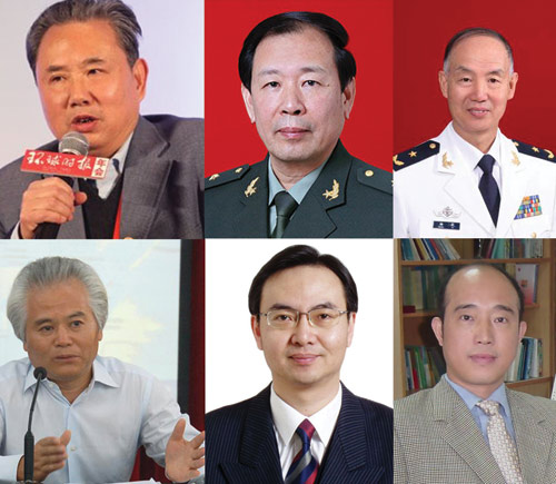 Số học giả trên được chia thành 2 nhóm: một nhóm nghiên cứu quân sự và từng hoặc đang là sĩ quan quân đội Trung Quốc, nhóm còn lại chuyên nghiên cứu về biển đảo và quan hệ quốc tế.