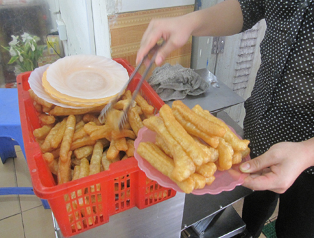 Không nên ăn những chiếc quẩy bẻ ra thấy rỗng bên trong hoặc có vị khét. Ảnh: Hà Thư