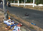 Dấu vết hiện trường nơi 2 thanh niên tông vào trụ điện tử vong.
