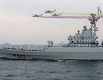 Máy bay hải quân và tàu chiến Trung Quốc trong lễ kỷ niệm 60 năm thành lập hải quân nước này. Ảnh: Guardian