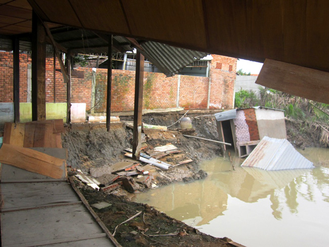 Hiện trường hai căn nhà bị sạt lở gần cầu Mương Chuối