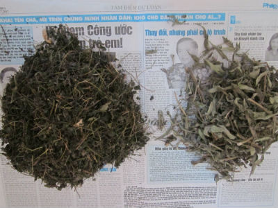 Hai loại cỏ phơi khô làm nước uống của người Hòa Bình