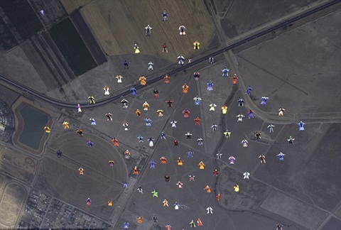 Những người tham gia cuộc chơi đã tạo đội hình kim cương trên bầu trời để được công nhận kỉ lục Guinness. Họ đến từ 21 quốc gia khác nhau, nhảy xuống từ 5 máy bay chuyện dụng từ độ cao 4km tại khu vực Perris Valley, Nam California.