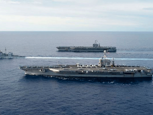 Đội hình tấn công Mỹ bất ngờ xuất hiện trên biển Hoa Đông