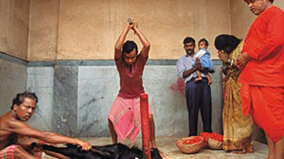 Tại hai bang thuộc miền Đông Kamakhya và Tarapith - nơi nữ thần Kali được xem là thần chính, những người sùng bái ở đó đã có sáng kiến độc đáo: giết chuột thay người để tế! Riêng ở Tarapith, một số chủ khách sạn có sáng kiến từ sự sùng bái nữ thần Kali để câu khách: treo những thanh kiếm và bàn chân nữ thần Kali bằng nhựa ở phía trước, gần với tấm bảng hiệu! Một số chủ khách sạn 4 sao khác câu khách táo tợn hơn bằng cách cho vẽ “bộ đồ nghề” của dê đực kèm với máu đỏ tươi, xong đem treo trước cửa. Theo họ, đó cũng là cách tỏ lòng tôn kính nữ thần Kali.