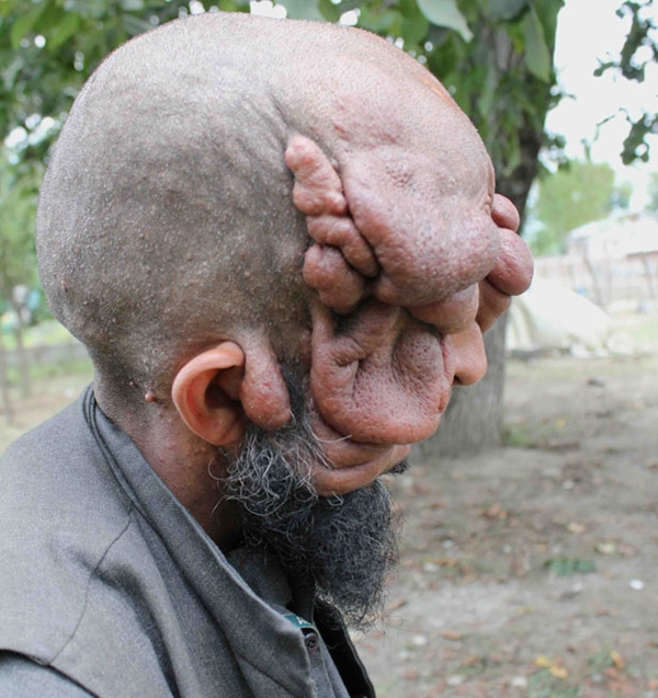 Anh Mohammad Latif Khatana, 32 tuổi, đến từ Kashmir, Ấn Độ sinh ra với một khối u trên khuôn mặt. Theo thời gian, khối u này đã không ngừng phát triển và khiến mặt của Mohammad có những nếp nhăn chảy xệ rất đáng sợ.