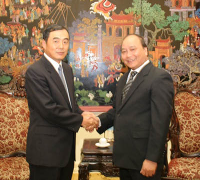 Phó Thủ Tướng Nguyễn Xuân Phúc và Ðại Sứ Trung Quốc Khổng Huyễn Hựu. (Hình: chinhphu.vn)