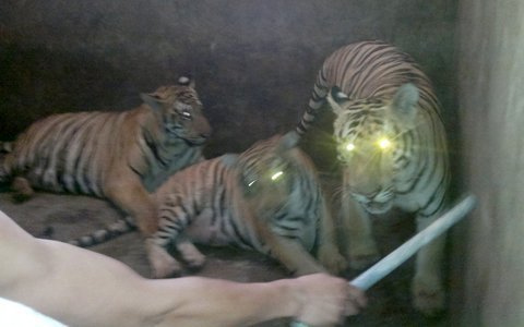 Những con hổ được nuôi nhốt tỏ ra khá hiền lành so với đồng loại của nó trong tự nhiên. Người lạ mặt có thể đùa, thậm chí... nhổ râu