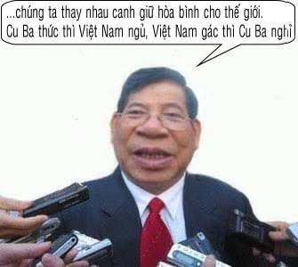 Tớ đồng ư với cậu "trên nguyên tắc", nhưng tớ sẽ không bao giờ áp dụng. Đời sống dạy tớ là ...khó có thể mặc áo veston, thắt cravate mà...nói chuyện với "ma Viet Gian". Và không thể dùng lời nói con người ...với bọn chỉ biết nghe tiếng thú.