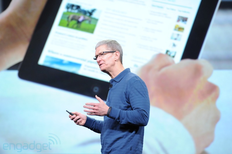 Vào 0h ngày 24/10, CEO Apple khoe về dịch vụ nội dung đồ sộ của Apple, có khoảng 200 triệu thiết bị iDevices đă sẵn sàng cập nhật lên iOS 6. Trên Apple Store có 1.5 triệu cuốn sách, 150 triệu game đă sẵn sàng được tải về, những nhà phát triển ứng dụng được Apple trả 6.5 tỷ USD cho đóng góp của họ. Điều này nói lên việc, Apple sẽ đưa ra một sản phẩm để phục vụ người dùng tiếp cận với những nội dung số mà họ cung cấp.