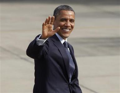 Tổng thống Mỹ Obama vẫy chào các phóng viên tại sân bay quốc tế Don Muang ở thủ đô Bangkok, chặng dừng chân đầu tiên của ông trong chuyến công du Đông Nam Á tới cả Myanmar và Campuchia.