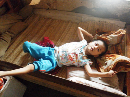 11 tuổi, với căn bệnh bại não, bé Hương chỉ có thể nằm một chỗ ú ơ la hét suốt ngày
