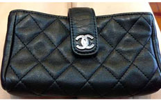 Chiếc ví bỏ điện thoại hiệu Chanel này có giá 700 USD nhưng nếu không nhìn kỹ logo, người mua dễ bị lừa bởi hàng nhái có giá 2 triệu đồng. Ảnh Thư Anh.Chữ "H" biểu tượng đặc trưng trên dây nịt, túi, giày nam-nữ được nhái không tì vết, làm khách hàng ma mị. Hoạ tiết không nhoè, móc khoá ít phai màu, lớp vải lót mịn màng, kiểu dáng lẫn số code trùng sêri hàng chính hãng.