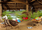 Sử dụng ngôi nhà tre như một nơi để thư giãn. Ông Hảo cho biết, ông chưa từng đi giày khi sống ở đây, vì cảm giác đi chân trần giữa nơi gần gũi với thiên nhiên thế này cực kỳ dễ chịu.