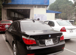 | Các ô tô nối đuôi nhau vào các trung tâm đăng kiểm. |