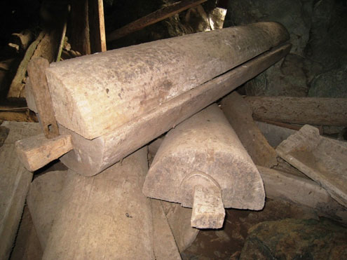 Toàn bộ quan tài ở núi Pa Cáng đều được làm bằng thân cây gỗ lớn, nhiều bộ ước nặng hàng tấn. Ảnh: Lê Hoàng.