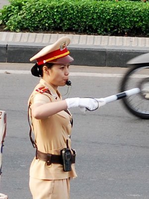 Hình ảnh xinh đẹp của nữ CSGT tại giao lộ Nguyễn Văn Trỗi- Trần Huy Liệu (quận Phú Nhuận).