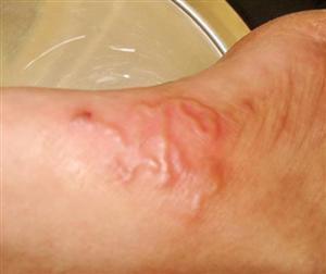 Trong trường hợp phát hiện chậm, người bệnh sẽ có triệu trứng phát ban ra ngoài kiểu mày đay mãn tính. Hay có thể thấy các đường ngoằn ngèo trên da.