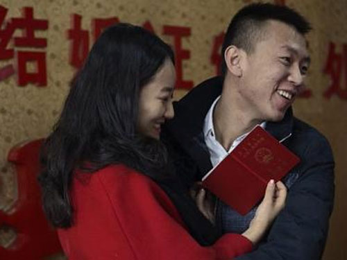 Một cặp đôi đăng ký kết hôn ở Trung Quốc. Ảnh: CNS