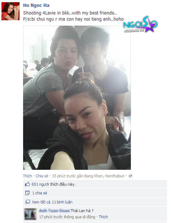 Hiện tại, cô đang ở Thái Lan để quay quảng cáo cho một nhãn hàng giải khát, trong phút giải lao bên bạn bè, Hà Hồ đã bất ngờ đăng tải trên trang cá nhân một bức ảnh chụp cùng bạn bè cùng lời mỉa mai khá chát chúa: