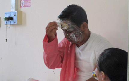 Trên giường bệnh, anh T. cho biết, trước hôm xảy ra sự việc, hai vợ chồng anh có xích mích với nhau về chuyện không có tiền đóng học phí cho con. Sau đó, hai vợ chồng đă “ḥa b́nh” trở lại. Hai hôm sau, khi anh vừa đi làm về, sau khi tắm rửa, anh đang ngồi ăn cơm với các con th́ vợ anh đang h́ hục nấu dưới bếp. Được một lúc th́ thấy vợ bưng một nồi ǵ từ dưới bếp đi lên, lúc đi ngang qua người anh th́ “vô t́nh” bị trật tay nên làm đổ nước sôi lên mặt chồng. Hoảng sợ về việc ḿnh gây ra, vợ anh gọi người đưa chồng vào Bệnh viện đa khoa Đồng Tháp cấp cứu. Tại đây, các bác sĩ cho biết, anh bị bỏng nặng nên chuyển lên Bệnh viện Chợ Rẫy.