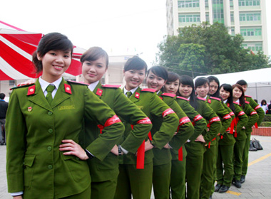 Khoác trên mình bộ quân phục, các sinh viên HV Cảnh sát luôn là tâm điểm của sự chú ý. (Ảnh: Ly Ly)