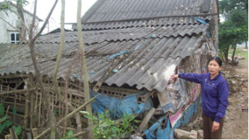 | Chị Thức bên ngôi nhà đổ nát của mình mà chính quyền huyện Ứng Hòa quyết định đuổi họ đi. |