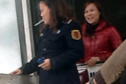 Default Nữ bảo vệ 'phì phèo' thuốc lá trong BV Bạch Mai
