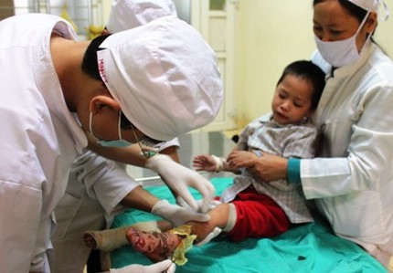 Theo bác sĩ Lưu Đức Thọ, Khoa ngoại chấn thương bỏng, Bệnh viện Nhi Thanh Hóa cho biết, bệnh nhi Tăng Thị Cói (5 tuổi, dân tộc Dao, trú tại bản Suốt Tút, xã Quang Chiểu, huyện Mường Lát nhập viện trong tình trạng bị bỏng, dẫn đến hoại tử, phải cắt bỏ năm ngón chân bên trái.
