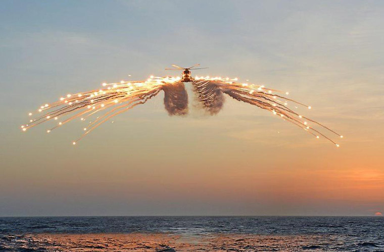 Ảnh quân sự ấn tượng nhất tuần: Trực thăng "bắn pháo hoa" trên biển