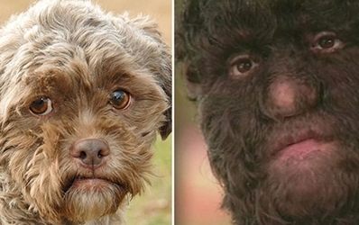 Khuôn mặt chú chó này khiến nhiều người bất ngờ vì có nét tương đồng với con người, đặc biệt là "người sói" lông lá Danny Ramos Gomez.