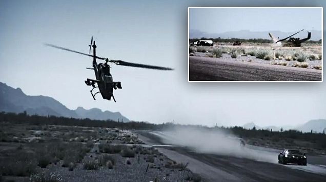 AH-1 Cobra đâm đầu, Chạy đua với xe hơi, Trực thăng, xuống đất