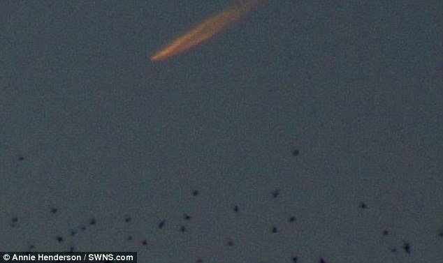 Trong khi đang cùng một người bạn chụp ảnh đàn chim sáo đá trên bầu trời khu bảo tồn thiên nhiên Avalon ở Shapwick Heath thuộc Somerset (Anh), nữ nhiếp ảnh gia Annie Henderson đă bất ngờ phát hiện thấy một vệt sáng đang bay với tốc độ rất nhanh.