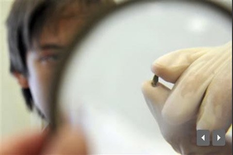 Các nhà khoa học kiểm nghiệm mảnh đá được cho là rơi ra từ vụ nổ thiên thạch. Ảnh: Alissa de Carbonnel