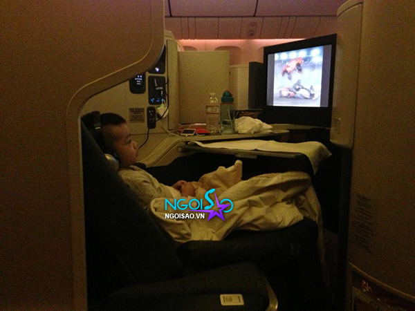 Subeo ngoan ngoãn xem tivi tại khoang máy bay hạng sang