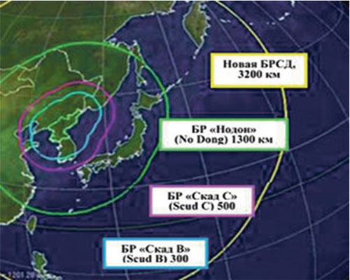 Cự ly bắn của các tên lửa đạn đạo Bắc Triều Tiên: Tên lửa đạn đạo “Skud V”- 300 km, Tên lửa đạn đạo “Skud S”- 500 km, Tên lửa đạn đạo “Nodong” 1300 km, Tên lửa đạn đạo tầm trung -3200 km.