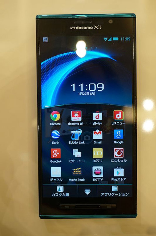 Chiếc Eluga X P-02E nổi bật với màn h́nh Full HD 5 inch, chip lơi tứ, camera 13 megapixel và khả năng chống nước, chống bụi giống như Xperia Z của Sony.