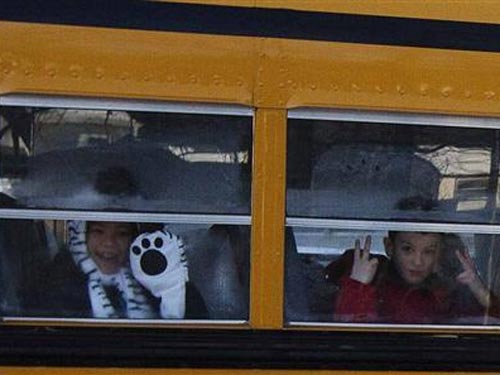 Hàng trăm học sinh Trường Tiểu học Sandy Hook ở thị trấn Newtown, bang Connecticut - Mỹ hôm 3-1